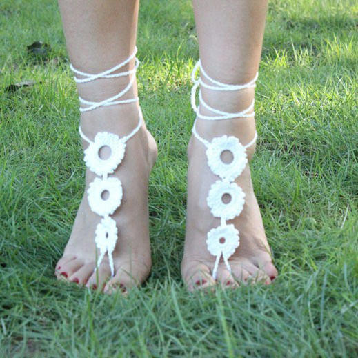 手編みのコットンでできたベアフット(裸足)サンダル。