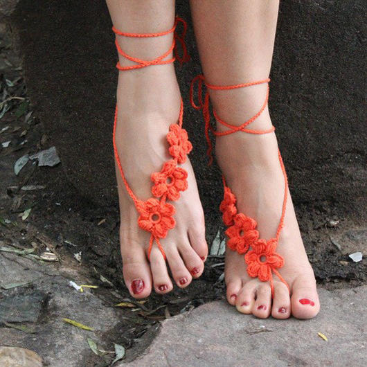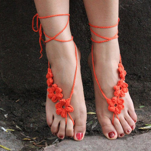手編みのコットンでできたベアフット(裸足)サンダル。