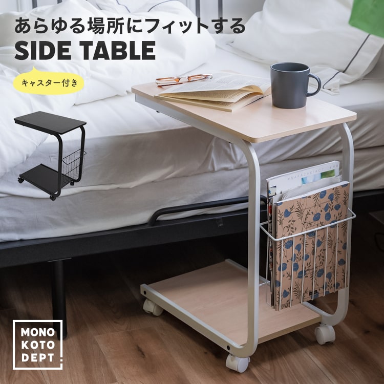 サイドテーブル キャスター キャスター付き ベッド 仕事 おしゃれ 北欧 白 サイドワゴン ベッドサイドテーブル キッチンラック 木目調 黒 ホワイト ブラック 収納 キッチン ベッド リビング アイアン 送料無料