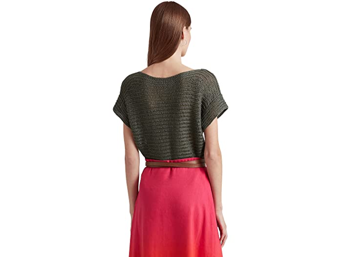 (取寄) ローレン ラルフローレン レディース リネン ショート スリーブ セーター LAUREN Ralph Lauren women Linen Short Sleeve Sweater Dark Tropical Olive