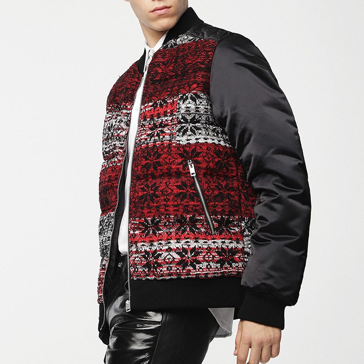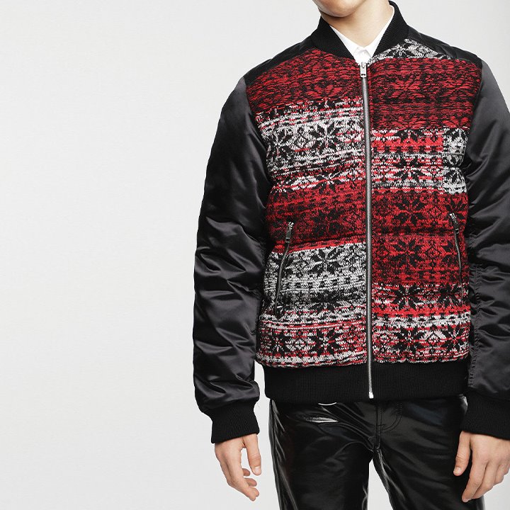 ■DIESEL ディーゼル メンズ■キルティング ニット切替 異素材MIX ダウンジャケット【K-BOOMY】【サイズXS〜XXL】【ブラック×レッド】die-m-o-b8-312 《メーカー希望小売価格60,500円》