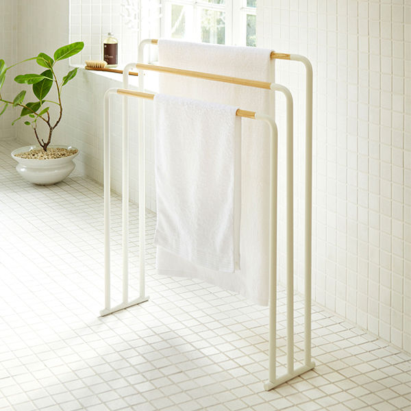 横から掛けられるバスタオルハンガー トスカ 3連 バスタオルハンガー tosca 山崎実業 タオルスタンド タオルハンガー 部屋干し 洗濯 スタンド ラック タオル掛け おしゃれ ナチュラル スリム