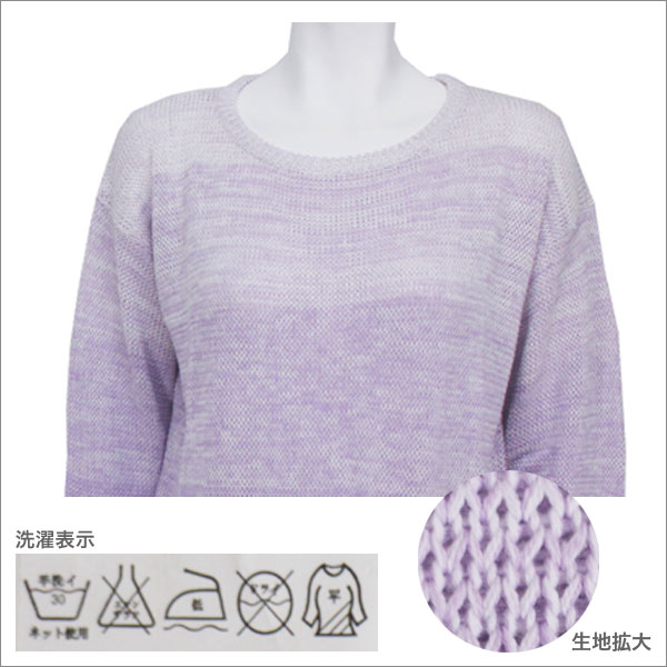 シーズン適性:春◎ 夏◯ 秋◎ 冬△婦人服 レディースファッション ミセス シニア ファッション 祖母 おばあちゃん 高齢者 女性 服 洋服 通販 グラデーション ニット 春 夏 秋 紫 パープル 黄色 イエロー