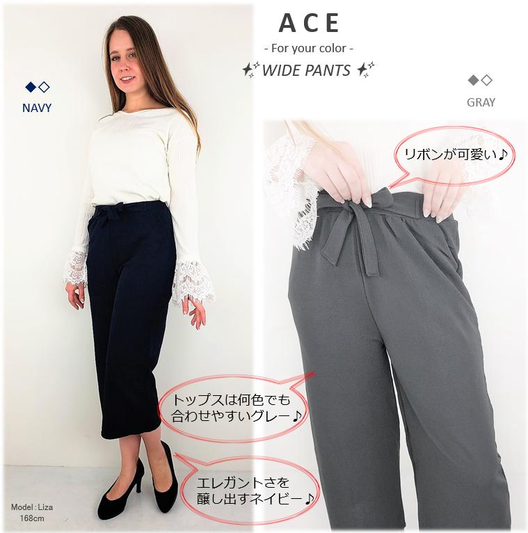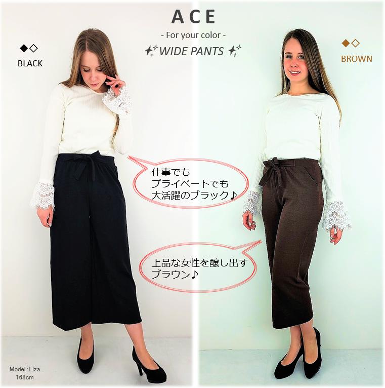 製品仕様 商品名 【ACE】ワイドパンツ サイズ/寸法 [M~Lサイズ] ウェスト65㎝(ゴム入り) 総丈83㎝ 股下53㎝参考:撮影モデル168cm 素材/材質 ポリエステル95% ポリウレタン5% 色 ブラウン、ネイビー、グレー、ブラック ご注意事項 【配送出荷日】お値打ちな商品をご提供する為に、デイリーでの出荷はしておらず、ご入金確認後の翌土曜日にて発送させて頂いております。